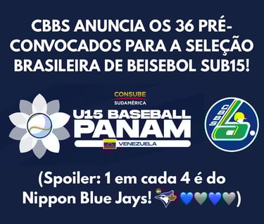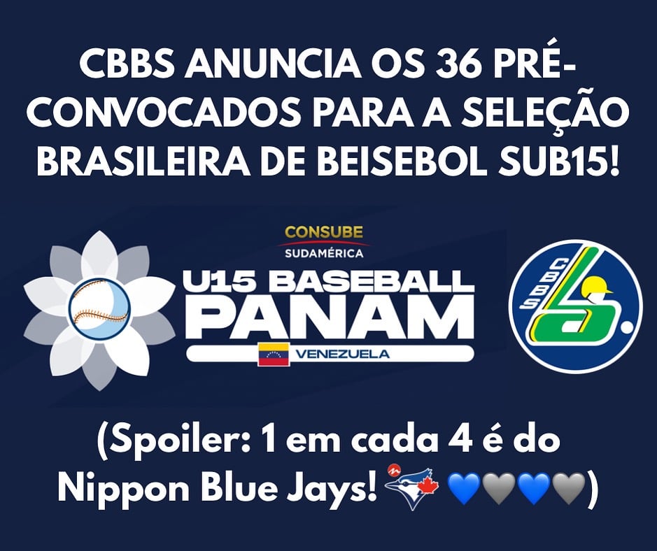 Nesse último fim de semana, 17 e 18 de maio de 2025, a Confederação Brasileira de Beisebol e Softbol (CBBS) realizou a seletiva no campo do Nippon Blue Jays, localizado no Nippon Country Club em Arujá, SP - e hoje, a CBBS publicou a lista dos 36 pré-convocados, que deverão comparecer nos dias 7 e 8 de junho de 2025, às 7h, para o café da manhã, no Anhanguera Nikkei Clube para a composição final da Seleção que irá disputar o Pan-Americano de Beisebol Sub-15 2025 na Venezuela!