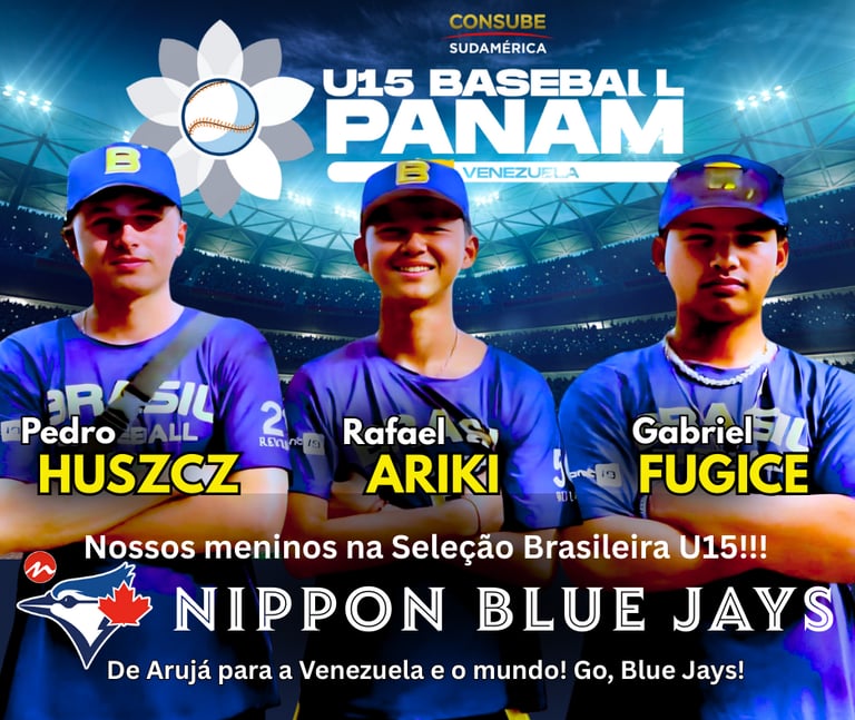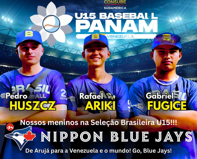 Nossos queridos atletas do Nippon Blue Jays Pedro Huszcz, Rafael Ariki e Gabriel Fugice estão com nossa seleção brasileira de beisebol U15 (sub 15 anos) na Venezuela defendendo o Brasil no Campeonato Pan-Americano de Beisebol organizado pela Consube/WSBC com o apoio da Confederação Brasileira de Beisebol e Softbol.
