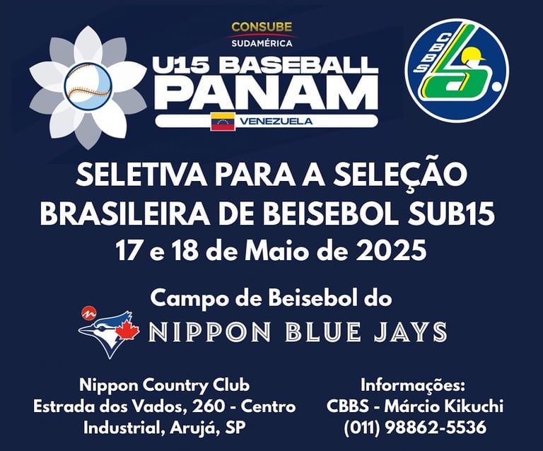 A Confederação Brasileira de Beisebol e Softbol realiza nos dias 17 e 18 de maio de 2025 a seletiva para escolha dos atletas que representarão o Brasil no VII Campeonato Pan-Americano de Beisebol Sub-15